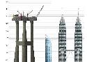 Les plateformes d'extraction de gaz ou de pétrole sont en grande partie immergées, ce qui empêche de voir leur taille complète, parfois immense. Cette illustration permet d'appréhender la taille de la Plateforme Troll A, implantée en Mer du Nord sur le plan grand gisement de gaz de Norvège. Avec 656 000 tonnes et 472 mètres de hauteur, c'est la plus grande structure jamais déplacée par l'Homme.