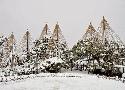 En hiver, les arbres des jardins japonais sont parfois coiffés de structures étranges. Ces Yukitsuri soutiennent les branches pour éviter qu'elles ne plient sous le poids de la neige.