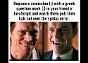 Naaaaan ... Le point d'interrogation grec ressemble comme 2 gouttes d'eau à notre point-virgule ";" !